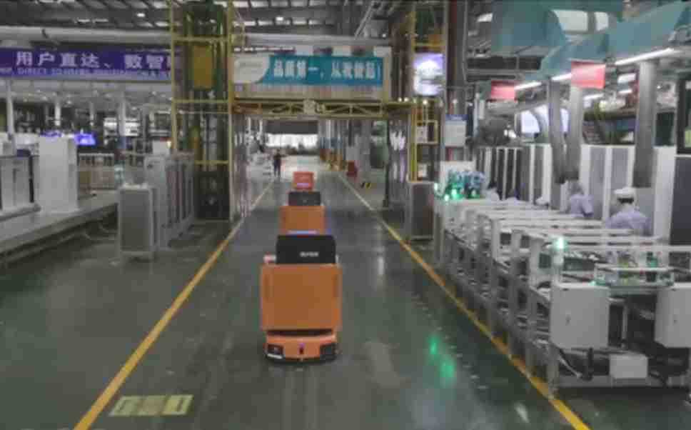 为车载冰箱物流配送打造的智能解决方案,,,包含产中物流通过潜伏举升AMR搬运至线边,,,产后成品物流智能仓储,,流程包含产中物流智能齐套入库,,,线边安灯叫料AMR智能配送至线边,,成品入库、、、出库,,,,通过无人堆高车机器人,,,,智能仓储管理替代人工作业管理,,,实现更高存储、、更高效率、、更具柔性化的解决方案。。。